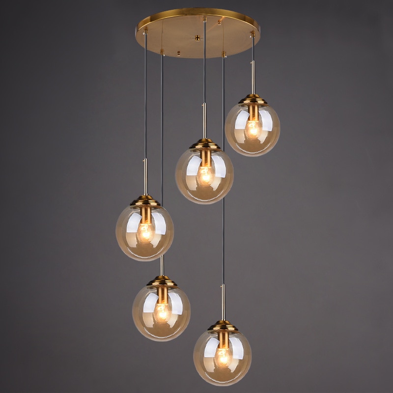 Transparent Amber Smoky Gray Glass Ball Pendant Lights Magic Bean Suspension Lamp Bar Dining Restaurant Indoor Hanging Lighting